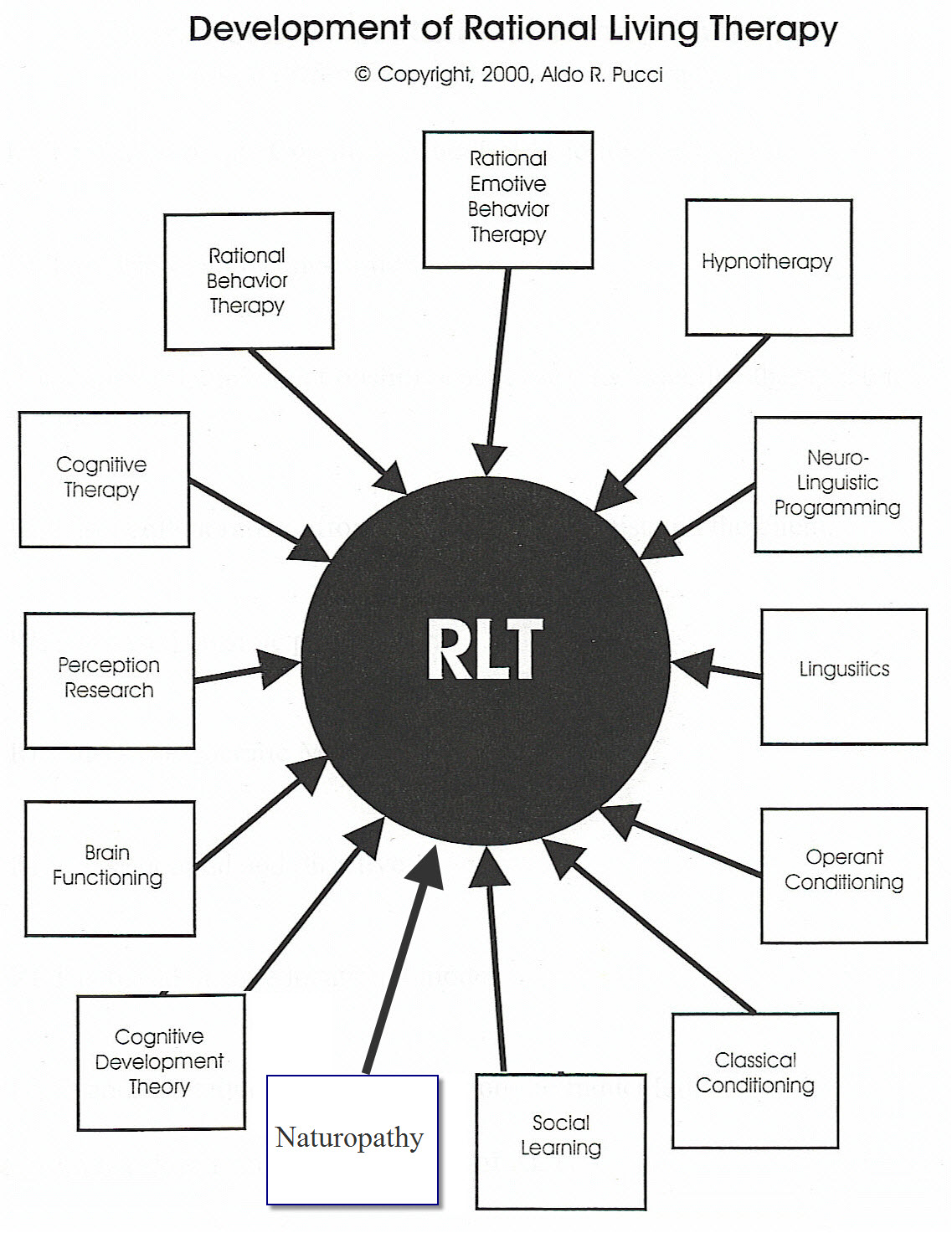 The eleventh influence on the development of Rational Living Therapy was Dr. Pucci’s study of naturopathy. Naturopathy seeks to help people identify and correct the cause(s) of their physical problems rather than simply extinguishing symptoms. Rational Living Therapy seeks to help people to get better rather than simply feel better. For example, no child is hyperactive because they are deficient in Ritalin. RLT seeks to identify why the child is hyperactive and to correct the cause(s). The two main ways RLT helps their clients to get better are to focus on underlying assumptions and to teach them rational self-counseling skills they can apply to any situation long after the formal therapy has ended.